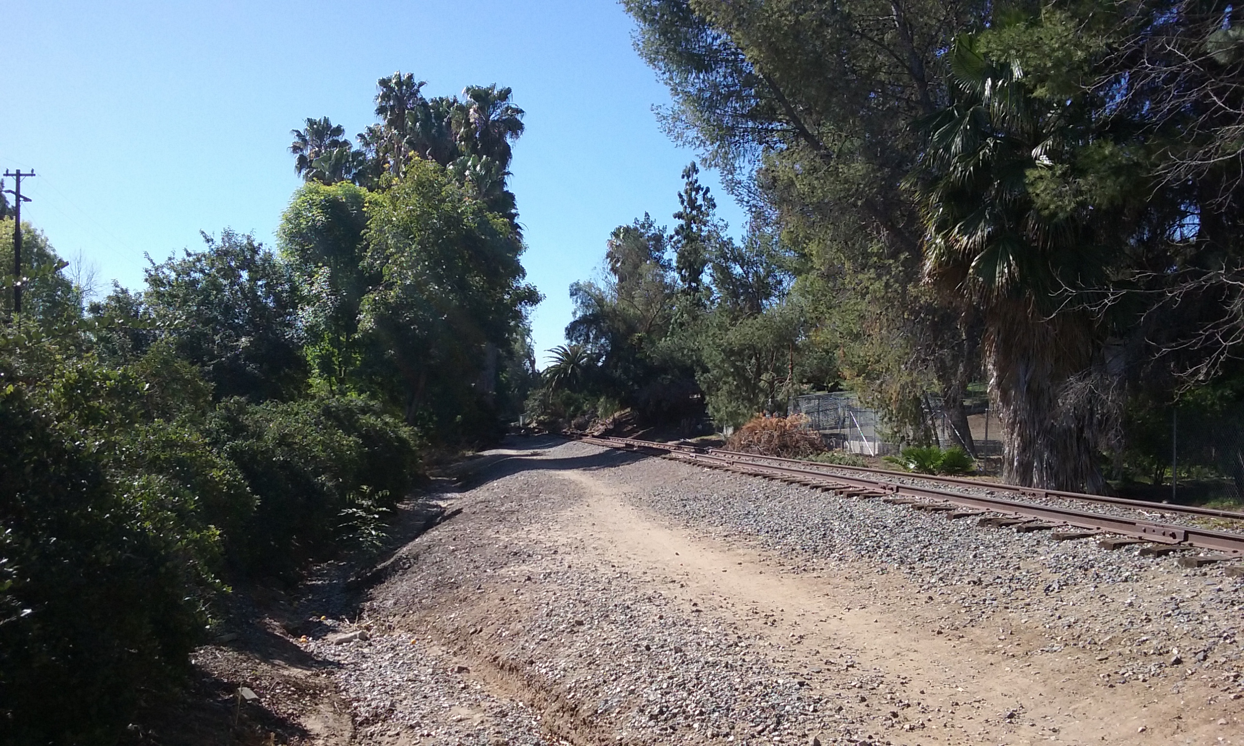 The trail that goes right by San Juan Park and extends in both directions for miles is officially nameless. That’s because it really doesn’t belong to the city. It is a Union Pacific line that up until the late 1980s carried tank cars of vegetable oil to the Hunt Wesson factory (Malvern and Bastanchury) for their tomato sauce. For some 70 years; one customer, once a day. That’s all it takes to keep a line open. When that one customer converted to trucks, Union Pacific turned their signal lights on the streets around. Abandoned is not quite the right word. But they certainly have no means to stop us from using it. This officially unnamed trail goes mostly north and south through Fullerton. Before you get your hopes up about converting it from Rail-to-Trail, note that the EPA will step in during the transfer and insist on a clean up that costs about 4 million dollars a mile. It naturally maintains itself so there’s almost zero incentive to rock the boat. Besides as it is, the tall trees that grow on the slopes are wonderful. Brea’s newly opened “The Tracks” trail has nothing on the beauty of our walk. Ours costs nothing; their “The Tracks” walk, their only walk, a mere 4 miles . . . was $17 million. With that kind of money we could buy the Coyote Hills and stop all the gawd amm fighting. There is really no reason to change anything about this trail. (Well . . . it would be nice if the rocks could be raked out of the way.)